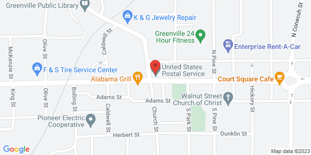 Post Office Located at 101 E Commerce St, Greenville, Alabama, AL, 36037-9998