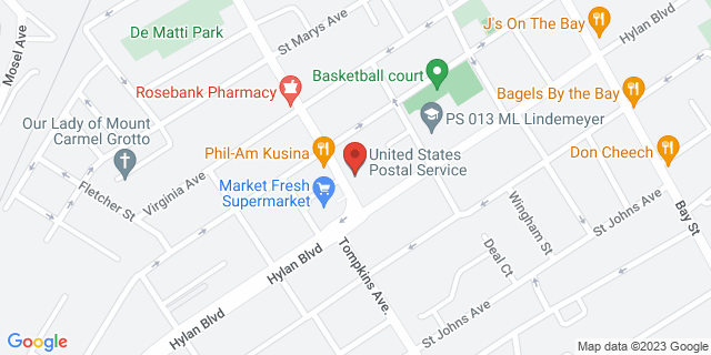Rosebank in New York (NY), 10305-9997 is a city with a population of people. Its residents have a median income of $. The local post office is located at 567 Tompkins Ave, Rosebank. It handles an estimated mails and packages per year. It employs an estimated staff.