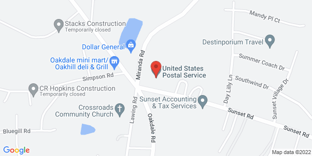 Oakdale in North Carolina (NC), 28216-9598 is a city with a population of 1,273 people. Its residents have a median income of $60,750. The local post office is located at 1101 Sunset Rd, Oakdale. It handles an estimated 532,735 mails and 31,411 packages per year. It employs an estimated 3 staff.