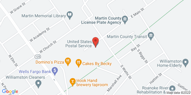 Post Office Located at 121 E Main St, Williamston, North Carolina, NC, 27892-9998